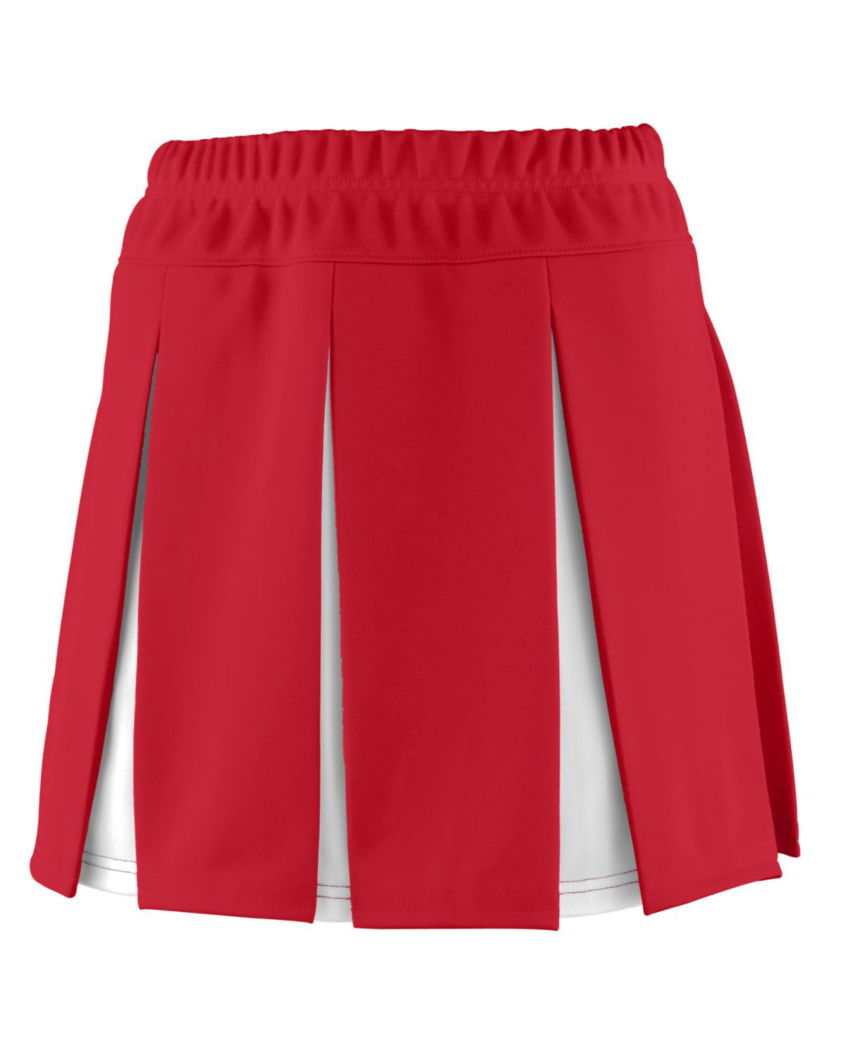 100% polyester double knit; Ladies’ fit; Covered elastic waistband; Contrast color pressed box pleats with yoke; Double-needle hemmed bottom