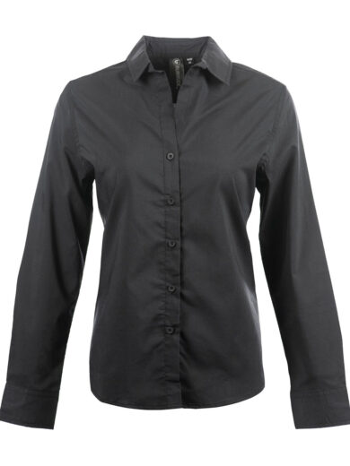 100% polyester; 2-piece self collar construction; back modern yoke; hemmed bottom; modern fit