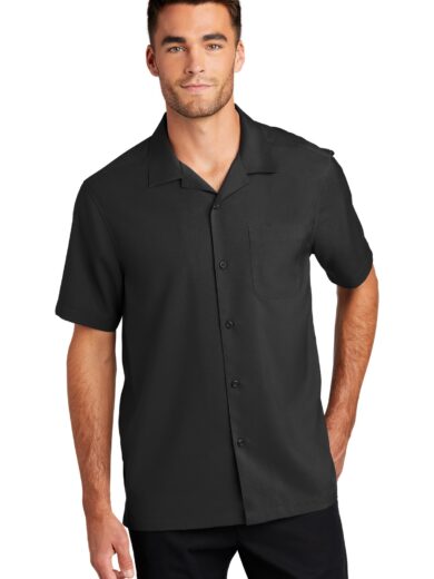 With a beautiful two-color weave–not to mention wrinkle resistance–this poplin shirt has a pleasing texture and truly impresses in the office. | 3-ounce, 60/40 cotton/poly Open collar and neckline Front and back darts Pearlized buttons Mitere